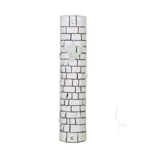 White Stone – Like Polyresin Mezuzah 15 Cm – "kotel Stones" Design With Silicon Cork