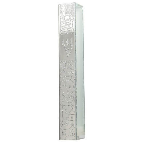 מזוזה זכוכית 10 ס"מ "ירושלים" כסף פקק סיליקון