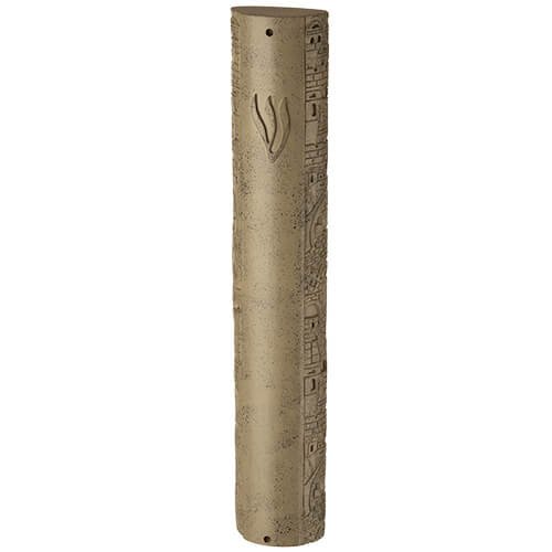 מזוזה פולירייזין דמוי אבן אפור "ירושלים" 12 ס"מ