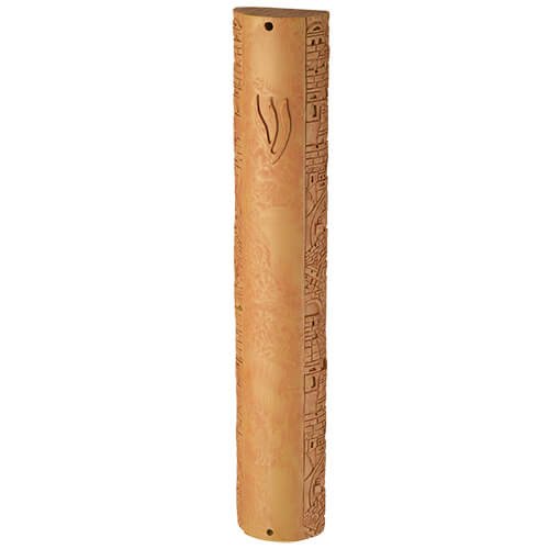מזוזה פולירייזין דמוי אבן חום "ירושלים" 12 ס"מ