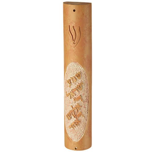 מזוזה פולירייזין דמוי אבן חום "שמע ישראל" 12 ס"מ