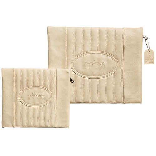 סט טלית תפילין דמוי עור אופוויט עם ריקמה 36*29 ס"מ