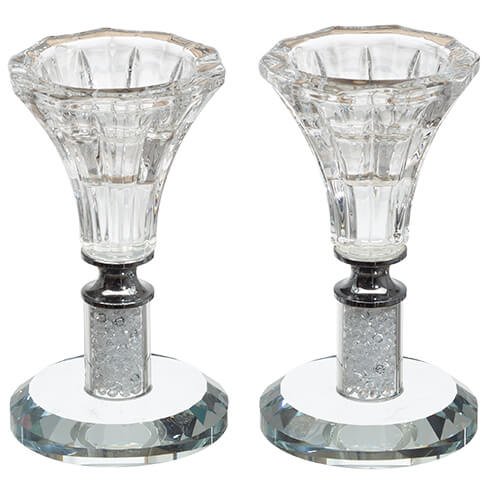 Pair of Crystal Candlesticks 10 cm with Stones